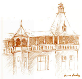Dann entdecke ich einige äußerst seltene Rombensprossenfenster. Und der oberste Teil des Hauses über den hervorspringenden Erkern ist mit Dachziegeln senkrecht verkleidet. Macht einen gewaltigen Eindruck. Zwei Wintergartenstränge komplettieren das großbürgerliche Gepräge.