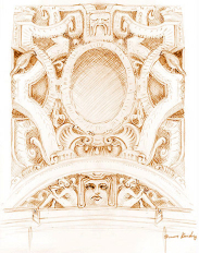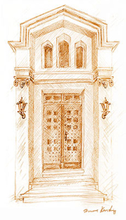 Öffne ich meine massive Wohnungstür (2,40m hoch; 1,20m breit) trete ich in den langgestreckten Hauseingangsbereich. Werde empfangen in einem lichten Tonnengewölbe. Ein Raum von ebener Erde bis zum ersten Stock! Florale Wandstukkaturen beiderseits farblich davon abgesetzt Kassetten & raumteilende Bänder. Lasst uns auf den Sisalläufer die vier Stufen nun nach draußen gehen. Von der Vorderfront führt ein 4½m mit Zierkopfstein bedeckten Weg bis zur Grundstückgrenzmauer. Der Bürgersteig misst 3,70m. Schon haben wir einen Abstand von 8,20m vom nächsten parkenden Auto. Da ist jeder Zentimeter mehr willkommen. Wir haben’s üppig!