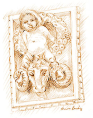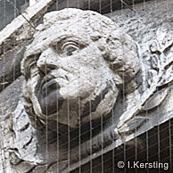 Nr. 14 weist so reichhaltigen Steinmetzschmuck auf, dass man vor Staunen Maulaffen feilbietet. Über der herrschaftlichen Tür ein nahezu ebenso großes Feld mit einer weinsaufenden Gestalt zu Linken und einem Traubenesser zu Rechten. Aber auch Tauben und andere Piepmätze turnen in den verschlungenen Bändern und Bordüren. Ich passe! Entschlüsselt vor Ort mit eigenen Augen!