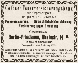Bei den vielen radikalen Umbrüchen und Bruchlandungen in den letzten hundert Jahren, freut sich unsereins, wenn es auf einen vertrauten Namen im Annoncement trifft, an den sich auch persönliche Erinnerungen knüpfen. Die Gothaische Feuerversicherung, eine der ältesten & damals innovativsten ihrer Art, entsprungen einem mitteldeutschen Zwergstaat zu Goethes Lebzeiten, hatte ihren Hauptsitz in der Nachkriegszeit in mehreren ausgedienten Kasernen in Göttingen gefunden und mein Schulweg führte täglich daran vorbei:
