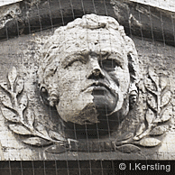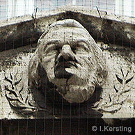 Der Altmann-Bau hat gewisslich biedermeierlich-behäbiges-behagliches an sich. Aber ich schätze auch diese bürgerliche Solidität hoch ein. Markant sind beide Großgebäude! Die modernistische Rasanz des Punitzer-Baus entzückt mich, dito das meisterliche Wahrzeichen (kilometerweit sichtbar) des Rathausturmes. Ich empfinde beide Gebäude auch nicht als Feinde. Ich lausche beider Melodien. Die sichtbaren Skulpturenköpfe deutscher Geistesgrößen, welche am Rathaus programmatisch geehrt werden, seien kurz genannt. Denn nicht jeder Passant hebt seinen Blick zu dieser Höhe. Nicht jeder Bürger kennt diese Gesichter. Und ein Großteil der Bevölkerung interessiert sich wahrscheinlich nicht für derartige Krimskrams der Vergangenheit. Zudem wird die Identifizierung sehr erschwert durch Verwitterung, Verschmutzung & Übertünchung. Auch ich musste mich mehrfach vor Ort vergewissern, da ich in der reichen Literatur zu Friedenau keine Hinweise gefunden hatte. Da sind der Baumeister Karl Friedrich SCHINKEL, Ludwig van BEETHOVEN, Richard WAGNER, Otto von BISMARCK, Paul von HINDENBURG, Adolph von MENZEL, Johann Wolfgang von GOETHE, Martin LUTHER.
