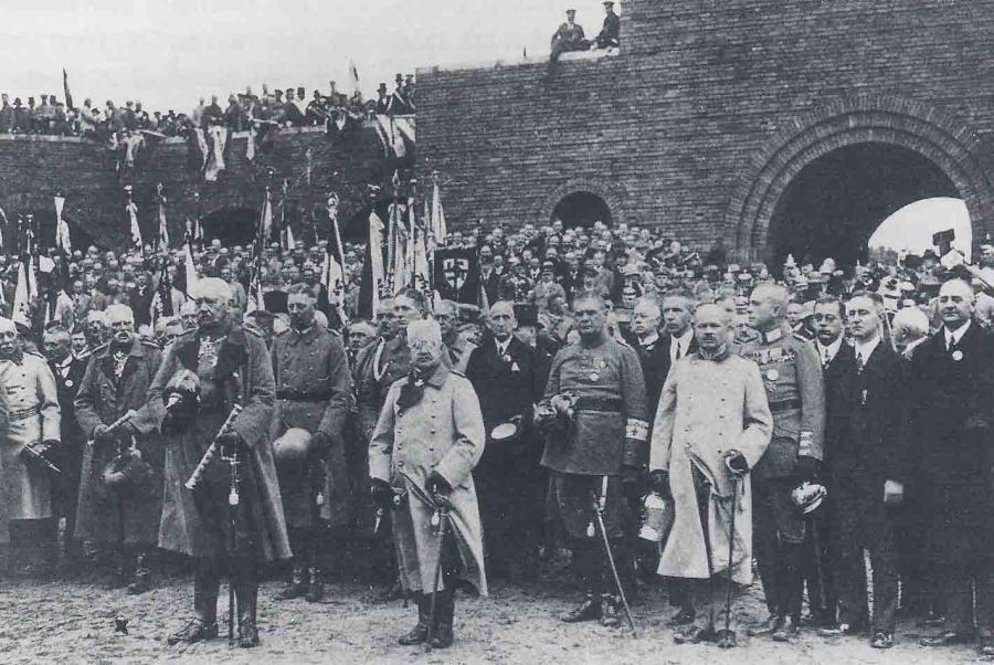 Unser Rathaus erhielt nie die ihm zugedachte Bedeutung, da Groß-Berlin (1920) entstand und Friedenau Schöneberg zugeschlagen wurde. Es sank zum Ortsteil herab. Der Kaiser ging, die Generäle blieben (Theodor Plivier) so hieß es und Hindenburg fungierte als hochdekorierter & würdiger Generalfeldmarschall immer mehr als Ersatzkaiser. 1925 wurde er vom Deutschen Volk mit Jubel der Friedenauer Bevölkerung – zum Reichspräsidenten gewählt. Sein 80. Geburtstag am 2. Okt. 1927 wurde über die Parteigrenzen in allen Schichten des Volkes gefeiert. Dies war der krisengeschüttelten Republik, die von Anfang an eine Fehlgeburt war (Hans Magnus Enzensberger), selten vergönnt. Auch wenn die Rolle des Greises in der bürgerkriegsähnlichen Zuspitzung 1933 umstritten bleibt, ist die Würdigung am Rathaus zu Friedenau nachvollziehbar & gerechtfertigt.