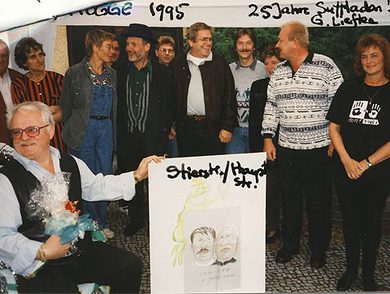 Der Wirt Günter Liefke übernahm am 1.9.1970 daselbst das Ruder und – unbelievable – er steht noch im März 2013 hinter der Theke. Ein Dinosaurier! Ein biographisches Kontinuitätsbeispiel von äußerstem Seltenheitswert in diesem anstrengenden Gewerbe. Weit über 40 Jahre uff’n Buckel und seine Schwester Edda (Jahrgang 1939) steht ihm immer noch hilfreich zur Seite. Wer hält das aus? Allein den Verlauf und Wandel in diesen Jahrzehnten zu beschreiben, würde auf romanhaften Umfang anschwellen. Schwänke und Überschwang reichlichst. Aber auch in diesem Falle gilt: die Himmel wechseln ihre Sterne – geh! (Gottfried Benn; Epilog-Zyklus)