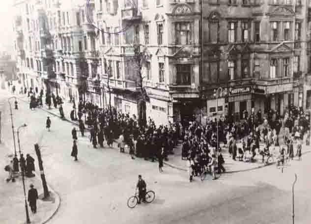 An der Ecke Wexstraße und Bernhardstraße war noch ein jüdisches Geschäft, ein Kurzwarenladen - sie hießen Kaufmann, und die Frau hatte sich die Haare ganz blond gefärbt und sagte immer zu Mutter, ihr würde man bestimmt nichts tun. Eines Morgens holten sie ihren Mann ab, sie flüchtete aufs Dach und fiel herunter. Um die Kaufmanns tat es allen sehr leid, sie waren seit Ewigkeiten in Berlin und hingen sogar die Hakenkreuzfahne zu Hitlers Geburtstag heraus - die dachten immer, das würde was nützen….