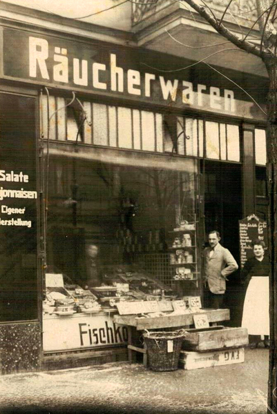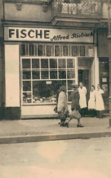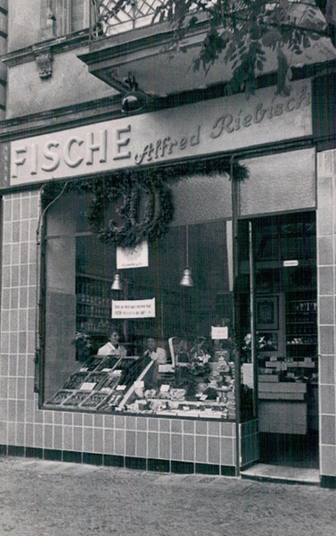 Sein Großvater Alfred Riebisch übernahm nach dem Ersten Weltkrieg den Räucherwarenladen von E. & A. Nachuth, der seit 1915 in der Bernhardstraße Nr. 11 existierte. Die Wohnung der Großeltern befand sich gleich gegenüber im Haus Nr. 10 Ecke Wexstraße. Dieses Haus wurde im Zweiten Weltkrieg jedoch ausgebombt und brannte nieder, während meine Großeltern mit meiner Mutter im Keller waren. Kurz danach zogen sie in Nr. 14. 1945 konnte Riebisch sein 25-jähriges Firmenjubiläum feiern, inzwischen nicht nur Fische & Räucherwaren, auch Wild & Geflügel.