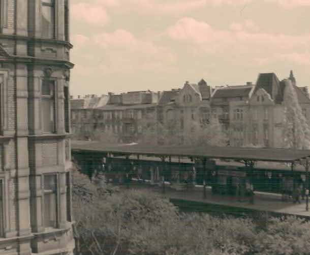 Gegenüber der Südseite lag der S-Bahnhof Wilmersdorf, ein Bahnhofseingang lag gegenüber vom Geschäft, und dadurch bekamen wir viel ‚Laufkundschaft‘, wie mein Stiefvater das nannte, sie wollten in Eile einen Absatz oder gerissene Nähte repariert haben oder kauften bloß Schnürsenkel. Die feste Kundschaft kam aus der Bernhardstraße…