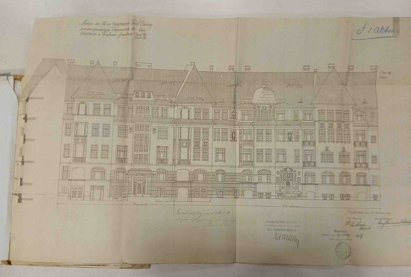 Eigentümer des im Bau befindlichen viergeschossigen Wohn- und Geschäftshauses.an der Ecke Cicerostraße war Magistratssekretär Max Cuhrt. Nach Recherchen von Aya Soika, Professorin für Kunstgeschichte am Bard College Berlin, wünschte der Bauherr die Ausgestaltung des Foyers und der Treppenaufgänge mit dokorativen Malereien und Mosaiken. Dazu kamen Ölgemälde mit Porträts der Familie Curth, die in den Wandtäfelungen der Aufgänge eingelassen werden sollten.
