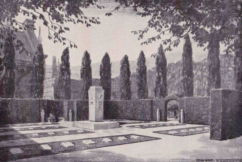 Am 24. Juni 1919 war zur Erlangung von Entwürfen für die künstlerische Ausgestaltung des Ehrenfriedhofes der Gemeinde Berlin-Friedenau auf dem Friedhof Stubenrauchstraße unter den hier ansässigen Künstlern ein Wettbewerb ausgeschrieben worden. Das Preisgericht besteht aus Bürgermeister Walger, Schöffe Lichtheim, Baurat Altmann, Bildhauer Professor Haverkamp, Architekt Professor Seeck, Architekt Schönknecht und Garteninspektor Stabe. Der 1. Preis ging an Architekt Bruno Schneidereit. Beschlossen war zuvor, den Ehrenfriedhof für die im Felde gefallenen Friedenauer Kriegsteilnehmer auf der Nordseite der Kapelle anzulegen. Bereits 1914 war das Gemeinsame mit den drei Beerdigungen der aus Lazaretten heimgeholten toten Söhne in privaten Gräbern aufgebraucht. Das rsprüngliche Konzept einer Ehrenstätte für die in der Ferne ruhenden Friedenauer Mitkämpfer geriet ins Wanken.