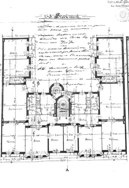 Errichtet wurde das Haus für acht Mietparteien. Vom Treppenhaus für die Herrschaften gingen pro Etage zwei Wohnungen mit jeweils 6 bzw. 5 Zimmern ab: Entrée, Salon, Herren-, Speise-, Wohn- und Schlafzimmer. Für das Personal gab es einen Aufgang im Hof mit direktem Zugang zur Küche.