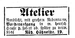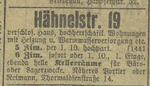 Das Grundstück Hähnelstraße Nr. 20 Ecke Lauterstraße Nr. 38 wird erstmals 1904 erwähnt: Neubau, Eigentümer Baugeschäft Siegmund Stöckel. 1905 erscheint im Friedenauer Lokal-Anzeiger eine Annonce: Lauterstraße 38 Ecke Hähnelstraße 20, am Birkenwäldchen, nahe Gymnasium, 5 Minuten von der Ring- und elektrischen Straßenbahn. Hochherrschaftlich elegant ausgestattete Wohnungen im verschlossenen Hause von 5 und 6 Zimmern, große Räume, Bad, große Mädchenstube, 2 Balkons, 2 Toiletten, Hinteraufgang, elektrische Lichtanlage und Gas. Zum 1.4.1905 (früher beziehbar) zu vermieten. Zentralheizung, event. Telephon. Näheres daselbst oder bei Siegmund Stöckel.